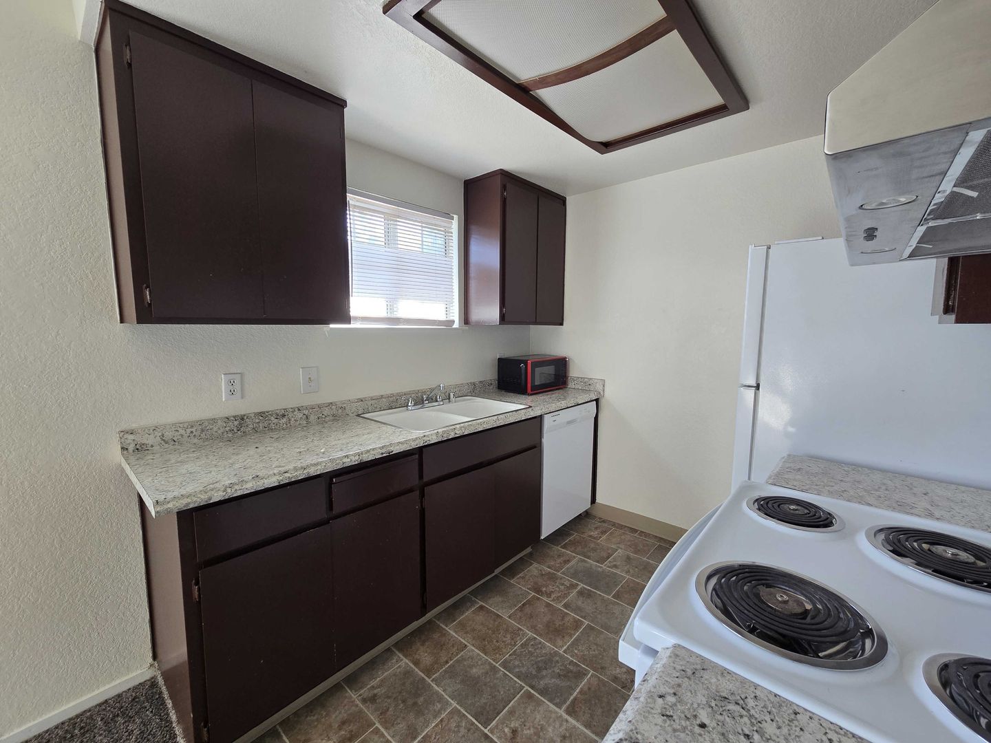 Inside, unit includes; electric stove, refrigerator, dishwasher, blinds, washer/dryer connections and newer flooring. Super cute unit available