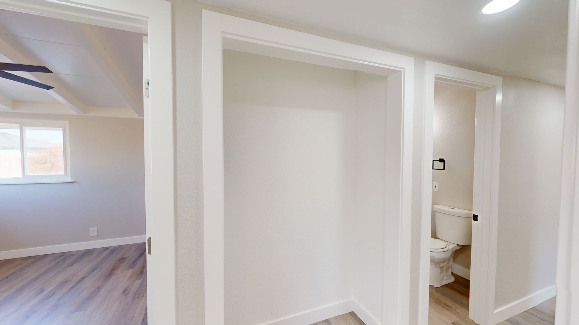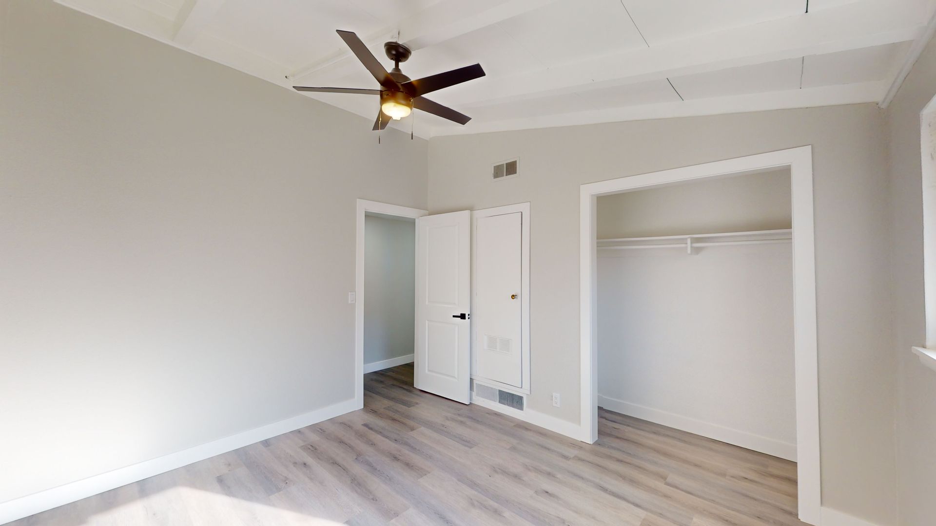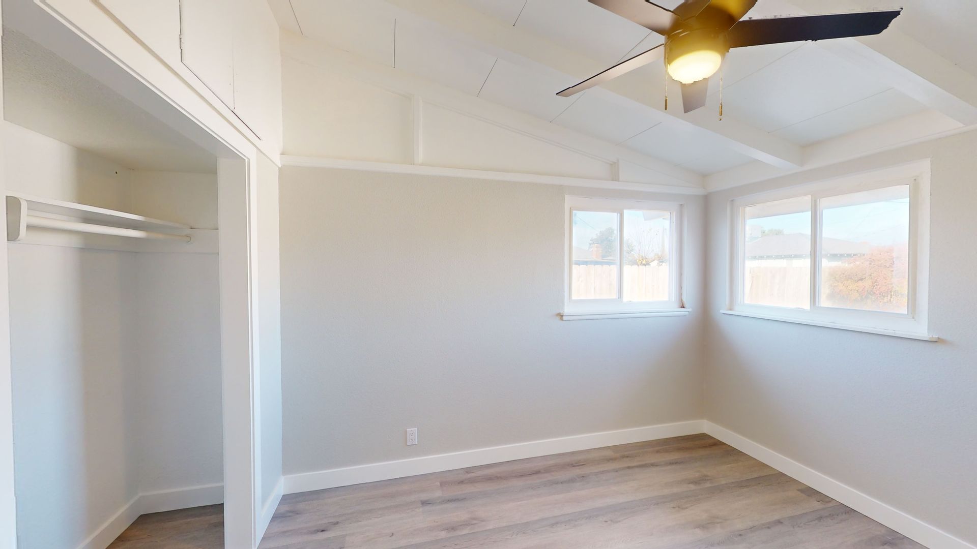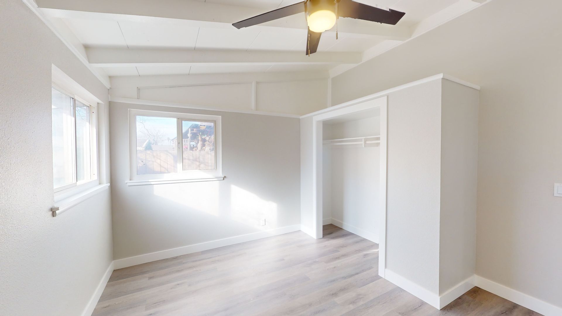 This is tastefully remolded home from the ceiling to the floors, it does not disappoint. Spacious open floor plan beautiful beamed ceiling and laminate flooring.